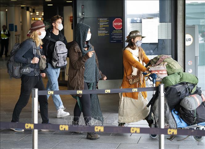 Hành khách tại sân bay Copenhagen, Đan Mạch.