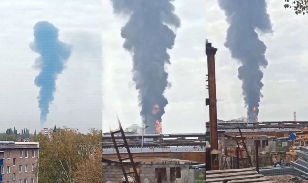 Khói lửa bốc lên từ nhà máy lọc hóa dầu Neftekhim Salavat của Nga hôm 18/9. Ảnh: Euro Maidan Press