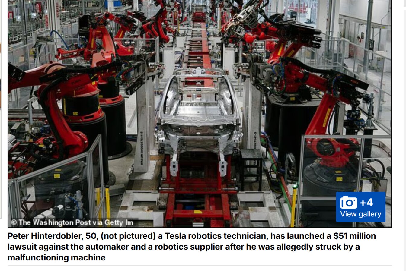 Một kỹ thuật viên robot của Tesla đã đệ đơn kiện đòi bồi thường 51 triệu đô la chống lại nhà sản xuất ô tô và một nhà cung cấp robot sau khi anh ta bị một robot bị trục trặc đâm trúng.