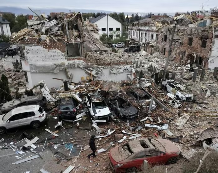 Hiện trường vụ không kích của Nga vào Kiev, Ukraine. (Ảnh: Reuters)