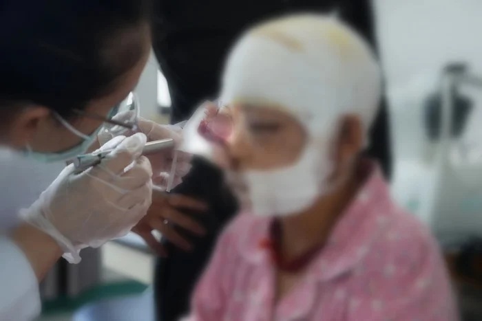 Khi nhập viện, các bác sĩ xác định bệnh nhân bị nhiều vết rách lớn vùng đầu, mặt, nhăn cầu phải sa ra ngoài và mất cảm nhận ánh sáng, tai trái rách nát kèm thủng màng nhĩ. Đáng lo ngại hơn, cô đang mang thai, khiến việc gây mê và phẫu thuật trở nên đặc biệt nhạy cảm. Đội ngũ y tế đă tổ chức hội chẩn khẩn cấp với nhiều chuyên khoa, bao gồm sản khoa, gây mê, mắt và tai mũi họng.