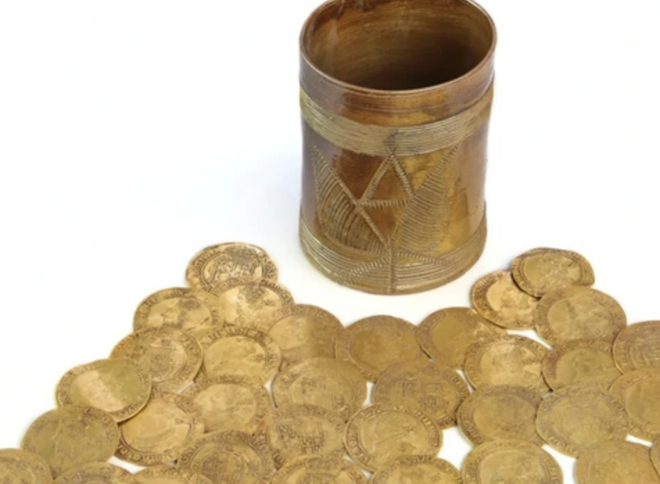 Tháng 7/2019, trong lúc sửa sang bếp, cặp vợ chồng ở làng Ellerby, hạt North Yorkshire, đã phát hiện một chiếc cốc gốm muối tráng men chôn dưới sàn bê tông và ván gỗ. Chiếc cốc, chỉ to bằng lon nước ngọt, chứa hơn 260 đồng vàng có niên đại từ 1610 đến 1727.
