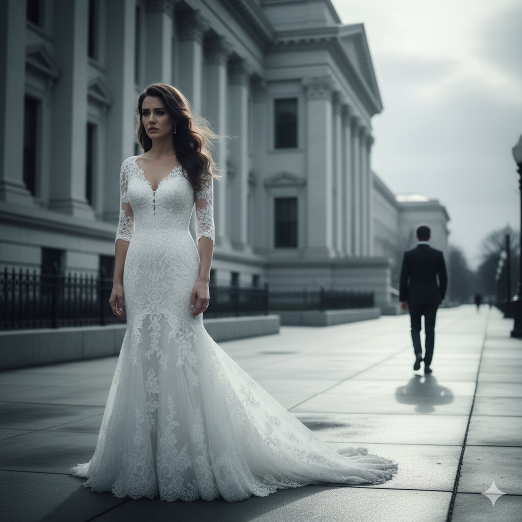 Câu nói ấy như một nhát dao nhỏ, cắt ngang niềm vui vừa mới bắt đầu. Cô dâu đứng thẳng dậy, không nói thêm lời nào, quay người đi thẳng vào phòng thẩm phán.