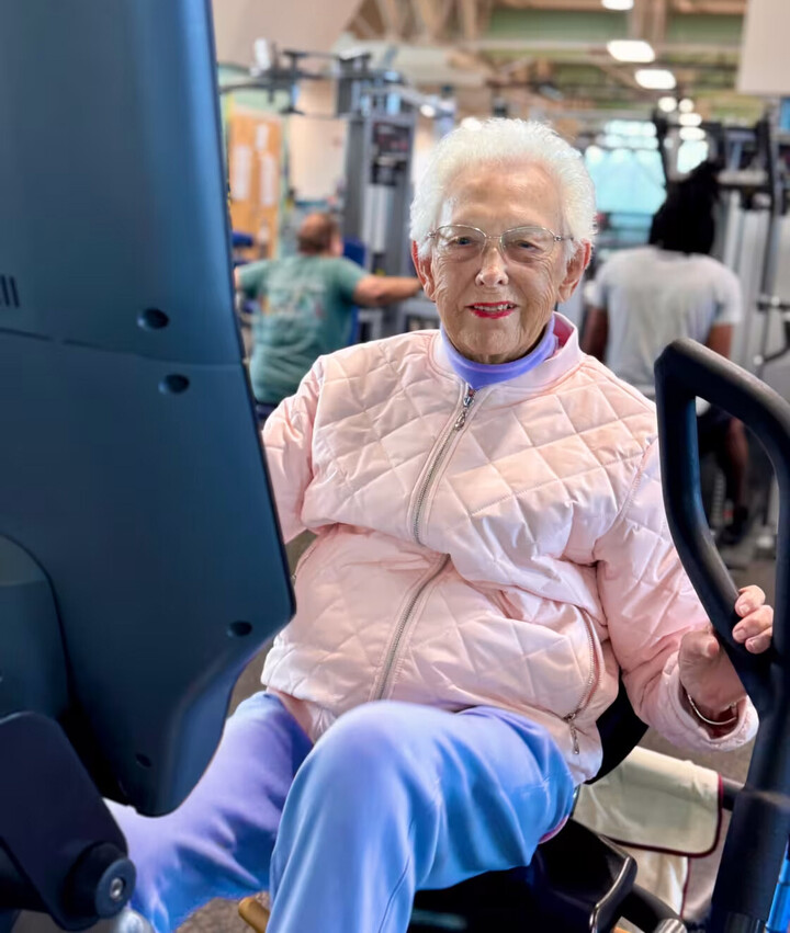 Hiện sống tại Virginia (Mỹ), bà Lemay đến pḥng gym 3 lần mỗi tuần, đạp xe trong 1 giờ và đi bộ trên máy hơn 1,6km. Dù đă trăm tuổi, bà vẫn sống một ḿnh, tự nấu ăn và từng lái xe đến năm 98 tuổi.