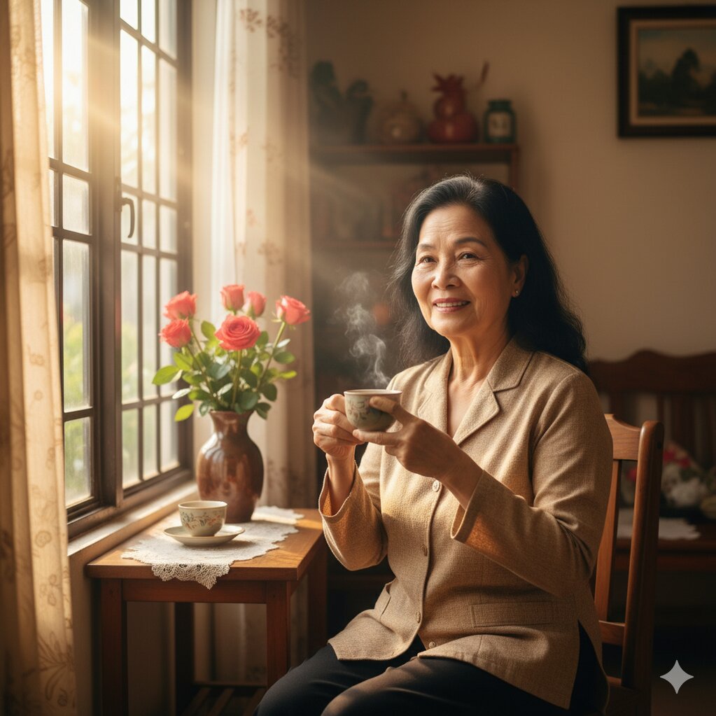 Tôi không còn chạy theo những ánh nhìn ngưỡng mộ, cũng chẳng cần chứng minh gì với ai. Tôi sống an nhiên, yêu bản thân, yêu cả những vết nhăn và mái tóc bạc. Vì tôi biết, chúng là bằng chứng cho một cuộc đời đã từng yêu sâu sắc, từng đau thật nhiều, và từng sống hết mình.