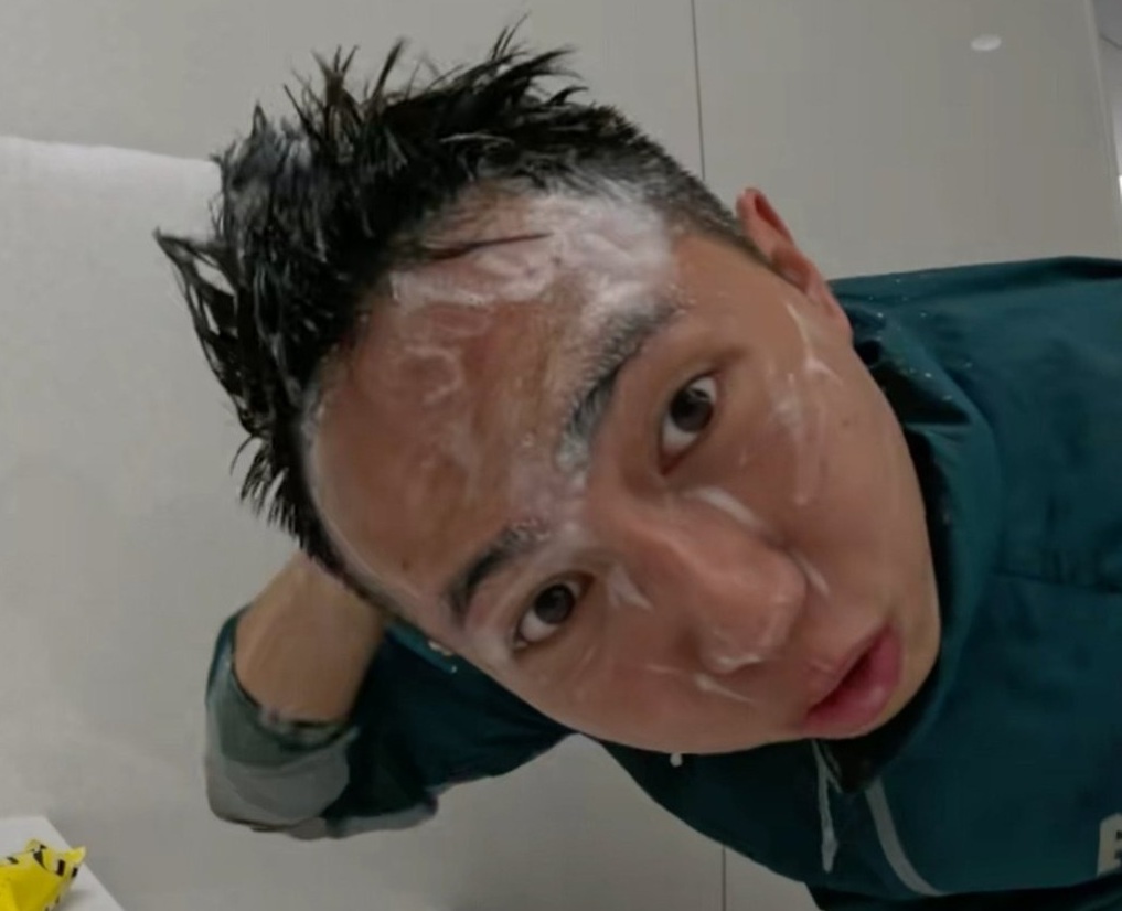 Yikeshu gội đầu trong nhà vệ sinh ở Nhật. Ảnh: SCMP