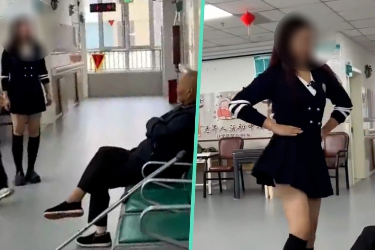 Mới đây, tài khoản mạng xã hội chính thức của nhà dưỡng lão này đã chia sẻ đoạn clip ghi lại hình ảnh một người phụ nữ mặc trang phục giống đồng phục học sinh, nhảy nhót khiêu khích trước mặt một người đàn ông lớn tuổi đang ngồi.