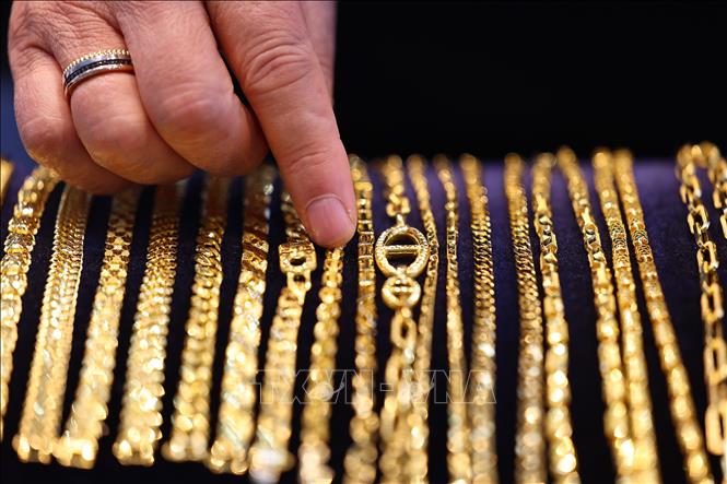Trang sức vàng được bày bán tại tiệm kim hoàn ở Seoul, Hàn Quốc.