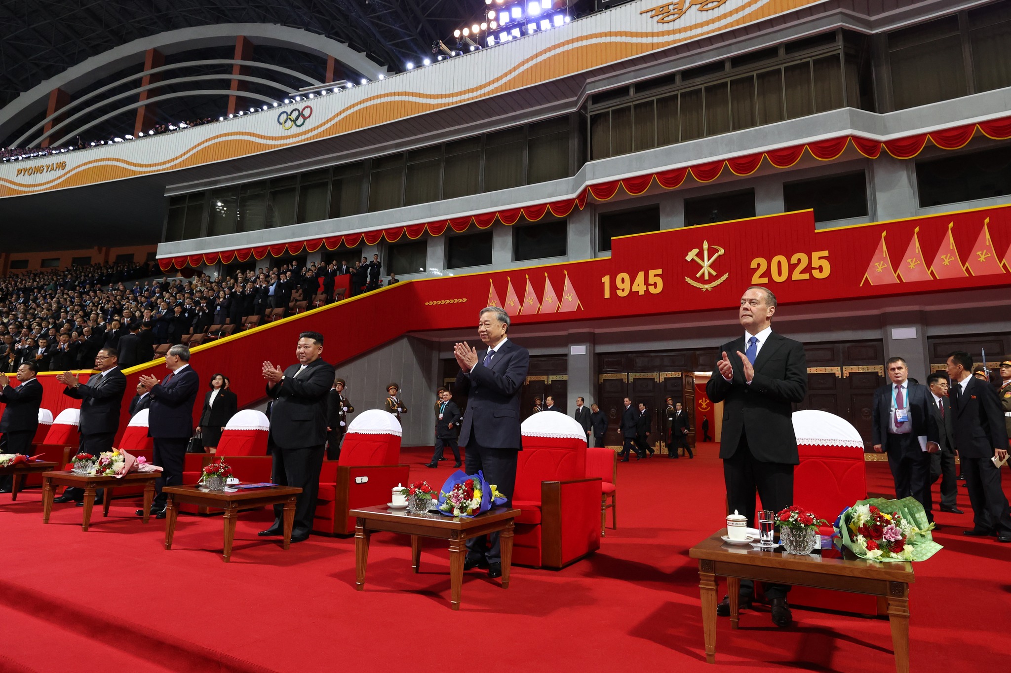 Người lãnh đạo Triều Tiên đã chào đón các quan chức nước ngoài gồm Tổng Bí thư Tô Lâm của Việt Nam, Thủ tướng Trung Quốc Lý Cường, Phó Chủ tịch Hội đồng An ninh Liên bang Nga Dmitry Medvedev, Tổng Bí thư, Chủ tịch nước Lào Thongloun Sisoulith đến Bình Nhưỡng nhân kỷ niệm 80 năm thành lập Đảng Lao động Triều Tiên.