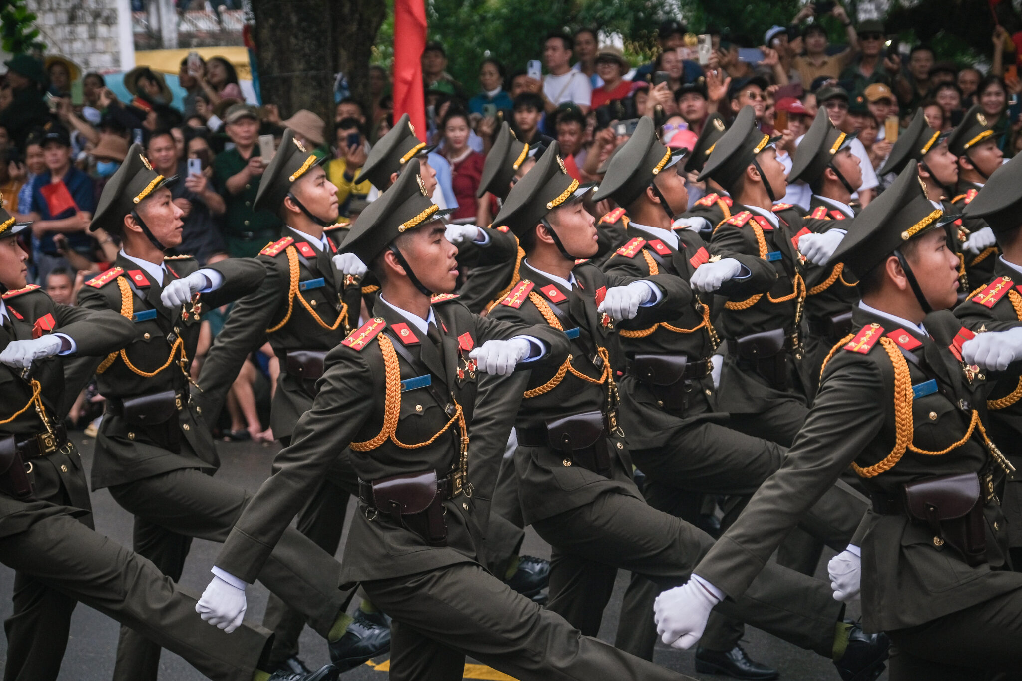 Lực lượng Công an CSVN tham gia diễn hành trong một ngày lễ của chế độ Hà Nội. Cách đây ít năm, có tin nói cứ 15 người dân thì có một nhân viên an ninh canh chừng. (Ảnh: Linh Phạm/AFP/Getty Images)