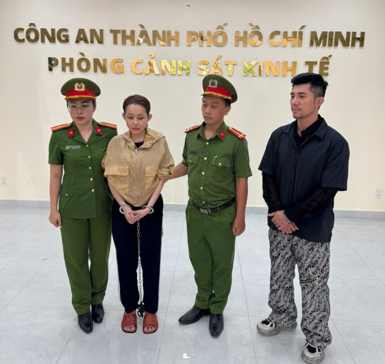 Vợ chồng Ngân 98 - Lương Bằng Quang tại cơ quan công an. Ảnh: CA