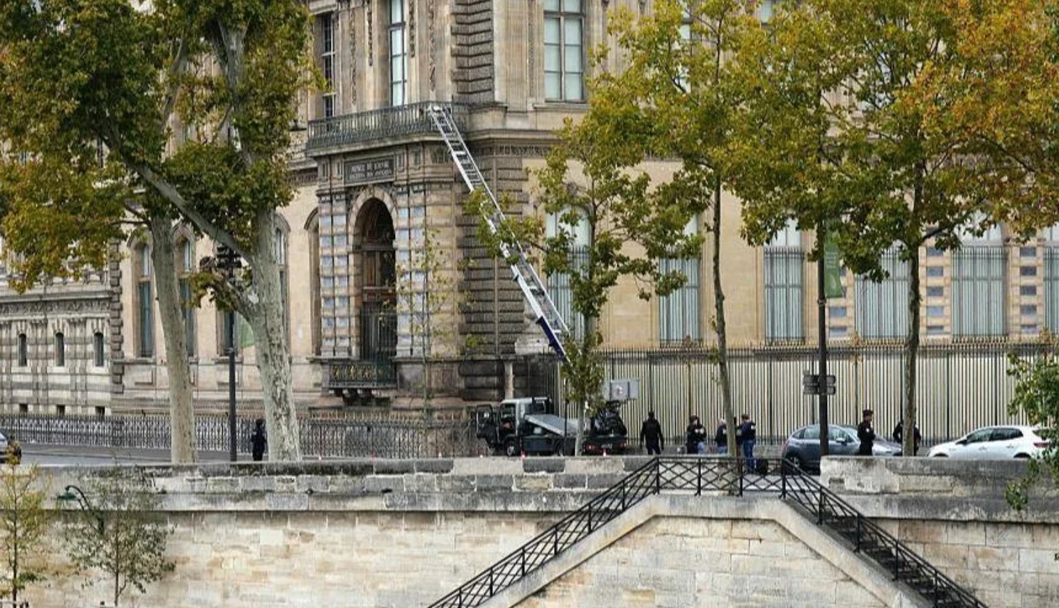 Bốn nghi phạm được cho là đã dùng thang cơ khí gắn trên xe để leo vào Galerie d’Apollon (Phòng trưng bày Apollo) qua ban công gần sông Seine. Hình ảnh tại hiện trường cho thấy chiếc thang nối từ xe lên cửa sổ tầng một. Hai kẻ đột nhập sử dụng máy cắt để phá cửa kính, rồi đe dọa nhân viên bảo vệ và cướp đi các vật phẩm trưng bày trong hai tủ kính.
