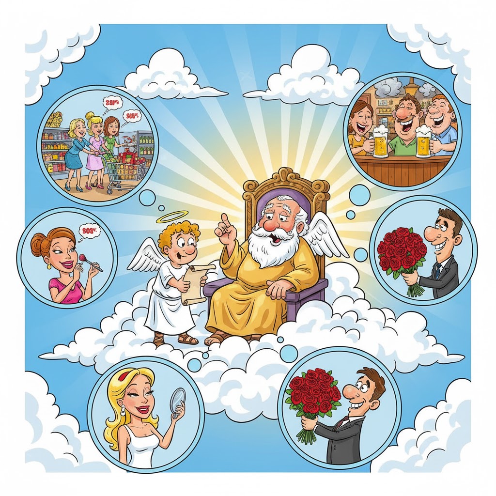 Một hôm, Thượng đế tổ chức buổi “hội thảo” để nghiên cứu về... hành vi khác thường của đàn ông và đàn bà.