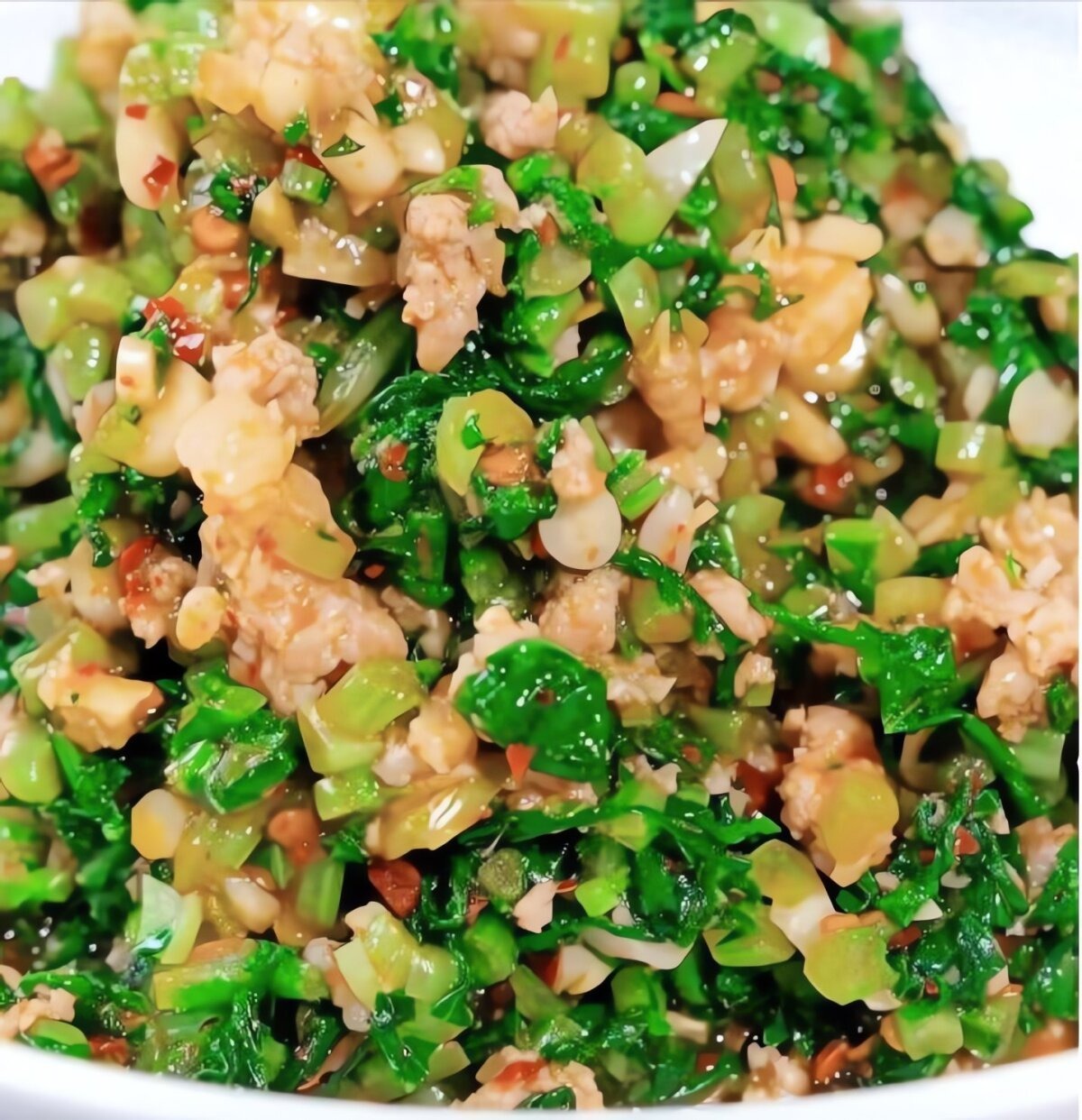 Loại rau này rất ngon khi xào với mỡ lợn và thịt lợn băm hoặc mang làm dưa muối.