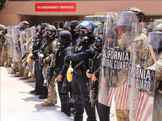 Lực lượng Vệ binh Quốc gia California được triển khai tại Los Angeles, bang California, Mỹ ngày 8/6/2025.