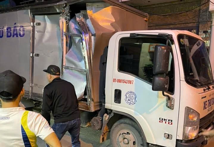 Sau khi di chuyển vào trong ngõ 785 phố Trương Định, tài xế bỏ xe, rời khỏi hiện trường. Sau loạt va chạm, xe tải bị móp méo phần thùng.