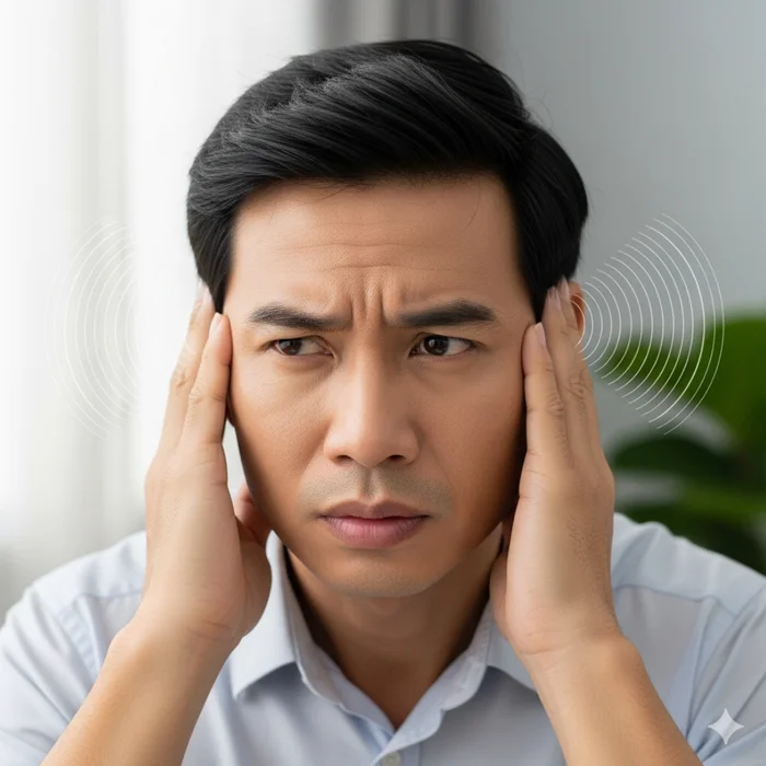 Rối loạn tiền đình đôi khi lại đi kèm với triệu chứng bị ù tai, cảm giác bị lùng bùng trong tai hoặc nghe kém. Người bệnh có thể cảm thấy khó chịu với những âm thanh lớn, dễ bị nhức đầu khi tiếp xúc với môi trường ồn ào. Đây là biểu hiện cho thấy hệ thống thính giác và tiền đình có sự liên kết bất thường, cần được gặp bác sĩ để được khám sớm.
