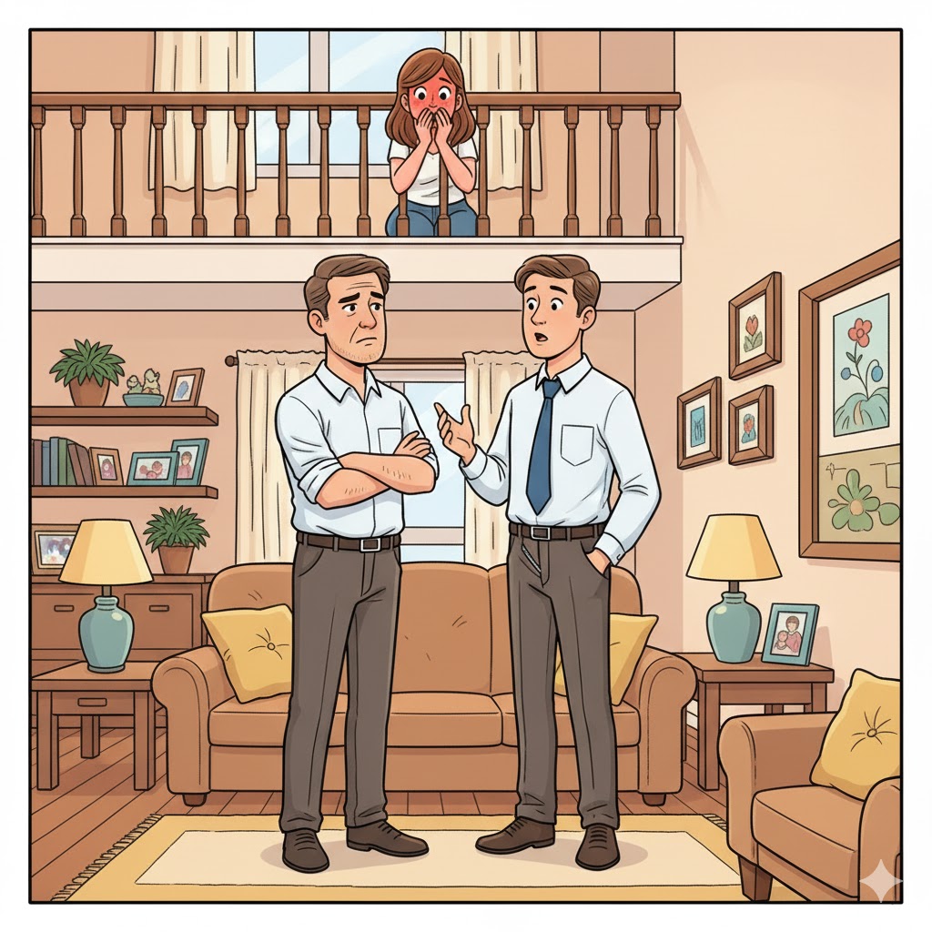 Mãi lâu sau, anh mới xuống. Ông bố nhìn anh, cau mày hỏi: