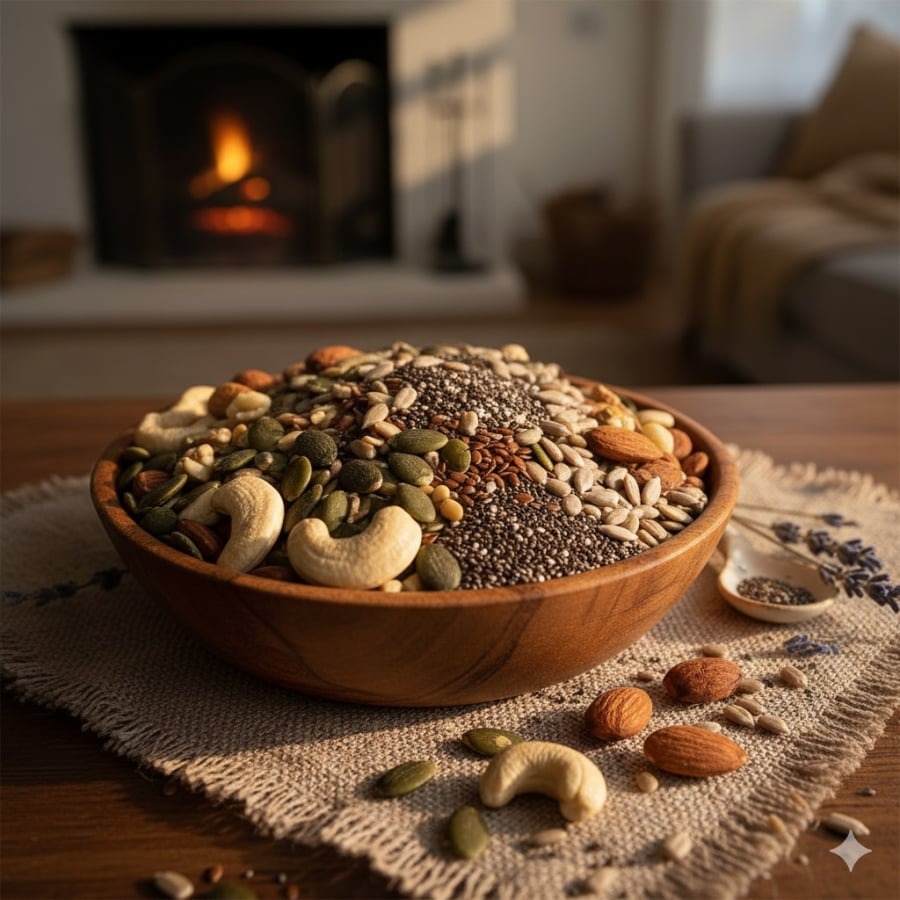 Các loại hạt không chỉ giàu magie mà còn chứa chất béo lành mạnh, protein, chất xơ và nhiều vitamin, khoáng chất giúp cân bằng năng lượng, cải thiện sức khỏe chuyển hóa và bảo vệ tim mạch. Nhờ đó, bổ sung hạt trong chế độ ăn mỗi ngày vừa giúp nâng cao sức khỏe tổng thể, vừa mang lại nền tảng tốt hơn cho một giấc ngủ chất lượng.