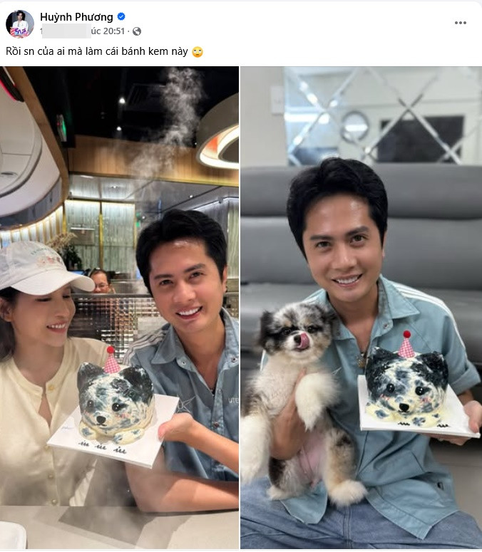Mới đây, Huỳnh Phương đăng tải hình ảnh trên trang cá nhân gây chú ý. Theo đó, nam diễn viên bất ngờ công khai hình ảnh sinh nhật bên Khả Như kèm chiếc bánh kem có dòng chữ: "Iu iu iu".