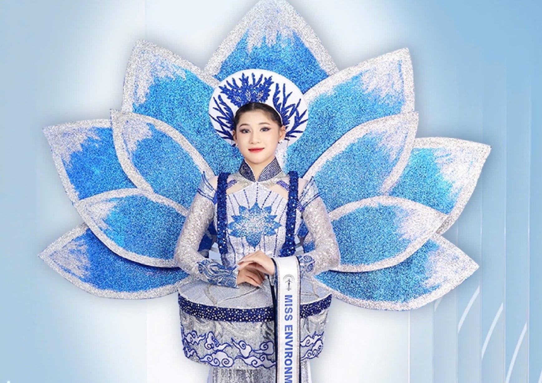 Người đẹp Trần Thị Mỹ Linh mang đến cuộc thi Miss Environment International 2025 bộ quốc phục "Bạch liên đăng". Ảnh: C.H