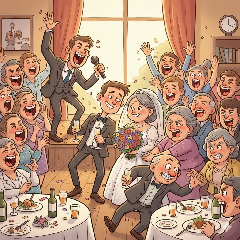 Một ông say khướt bước lên tặng nhẫn rồi nói: