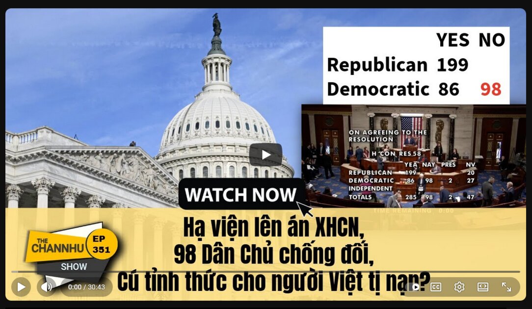 HẠ VIỆN LÊN ÁN CHỦ NGHĨA XÃ HỘI, 98 ĐẢNG VIÊN DÂN CHỦ PHẢN ĐỐI, MỘT SỰ THỨC TỈNH CHO NGƯỜI TỊ NẠN VIỆT NAM? (Video)