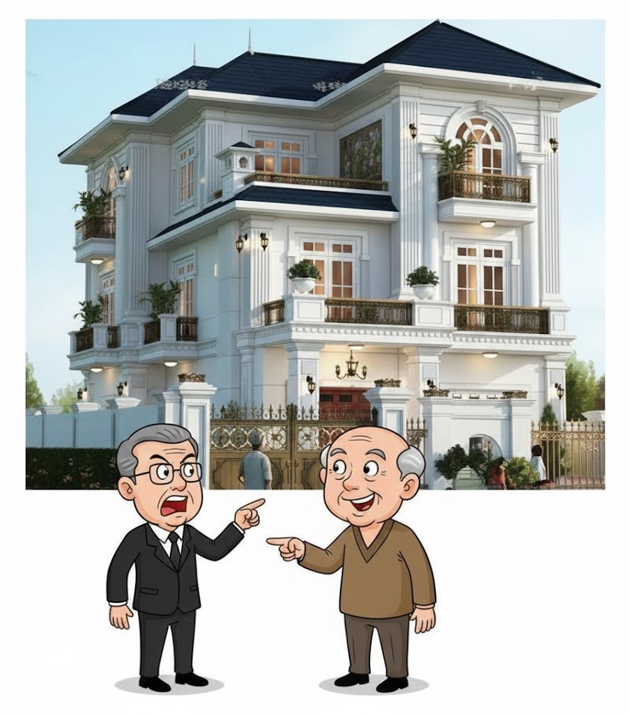 Ông lão: Bằng chứng đấy! – Ông cụ vừa nói vừa chỉ vào ngôi biệt thự.