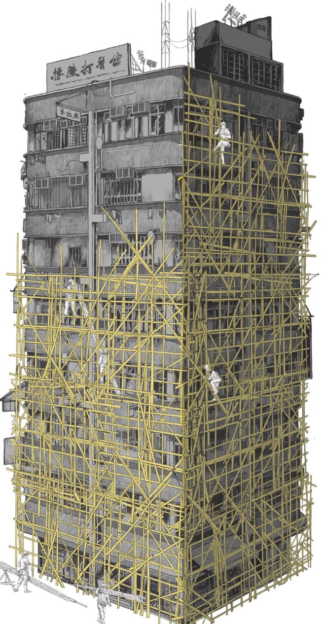 Tại Hong Kong, các đội thợ lắp giàn giáo lành nghề có thể dựng đủ lượng tre để bao bọc một tòa nhà chỉ trong một ngày, thậm chí vài giờ, bằng cách áp dụng các kỹ thuật đã có từ hàng ngàn năm và được truyền lại qua nhiều thế hệ.