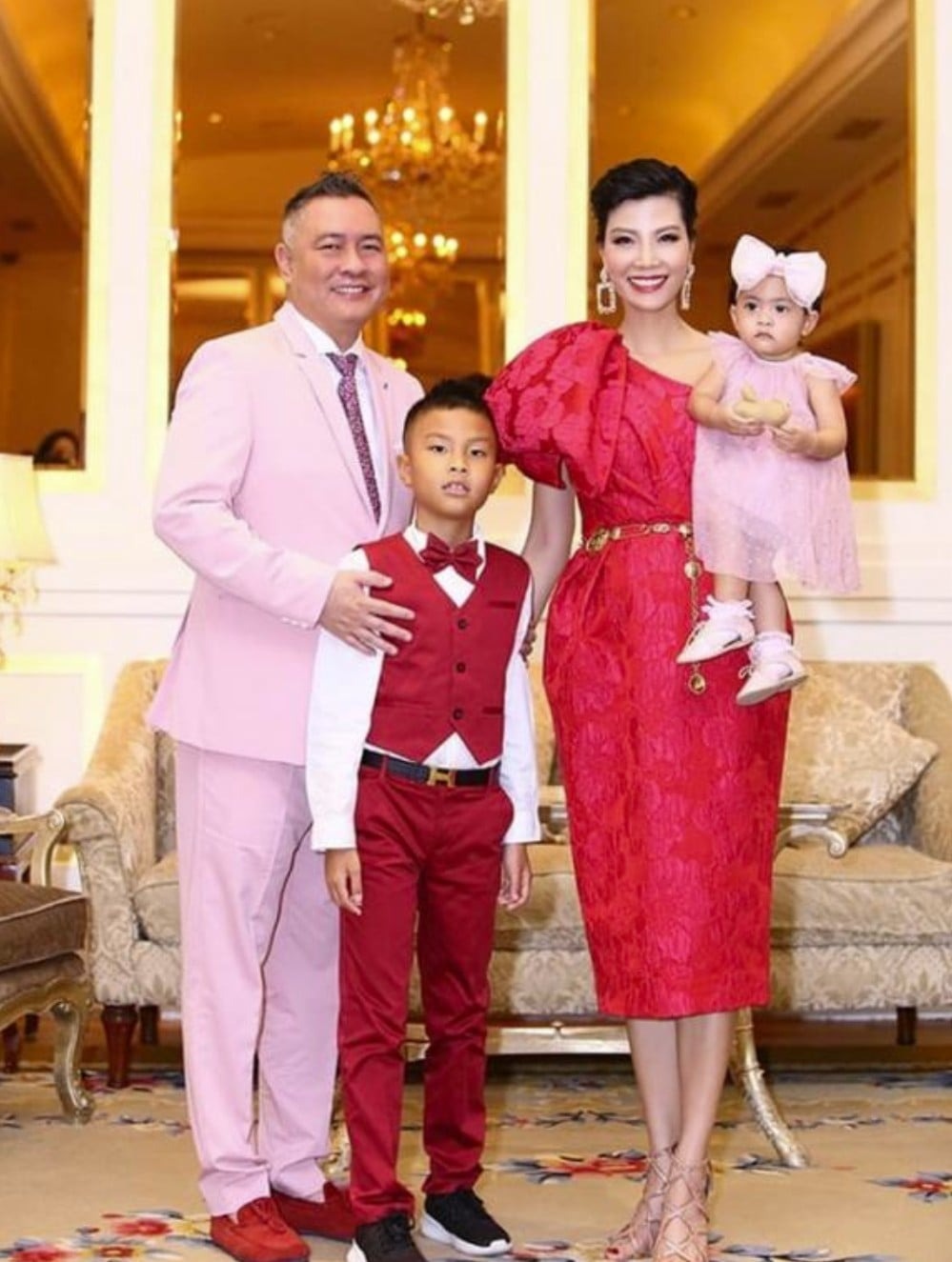 Cựu siêu mẫu Vũ Cẩm Nhung bên chồng và hai con. (Ảnh: FBNV)
