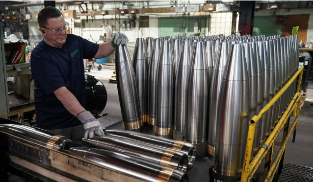 Công nhân trong một nhà máy sản xuất đạn pháo 155mm tại bang Pennsylvania (Mỹ)