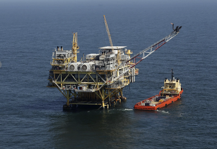 Một giàn khoan dầu và tàu tiếp vận ở vịnh Mexico, ngoài khơi bang Louisiana - Mỹ Ảnh: AP