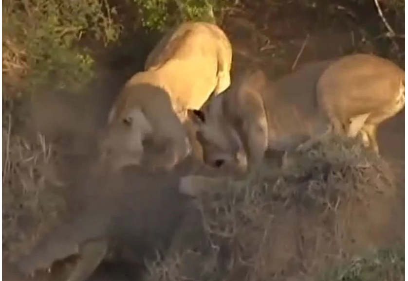 Tuy nhiên, khi 4 con sư tử cùng lúc lao vào cắn xé, con cá sấu lập tức phản công. Nó há to hàm răng sắc như dao, bật ra đòn tấn công quyết liệt khiến đàn sư tử chững lại. Nhận thấy nguy cơ bị thương nặng và không thể giành phần thắng, cả nhóm sư tử nhanh chóng rút lui.