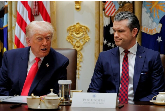 Tổng thống Mỹ Donald Trump và Bộ trưởng Quốc phòng Mỹ Pete Hegseth tại cuộc họp nội các ở Nhà Trắng hôm 2.12