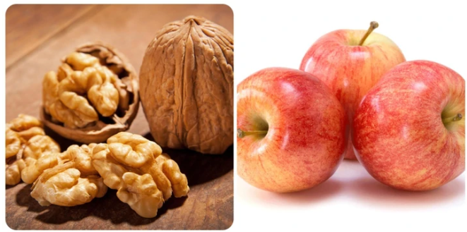 Hạt óc chó và quả táo là những thực phẩm rất tốt cho gan.
