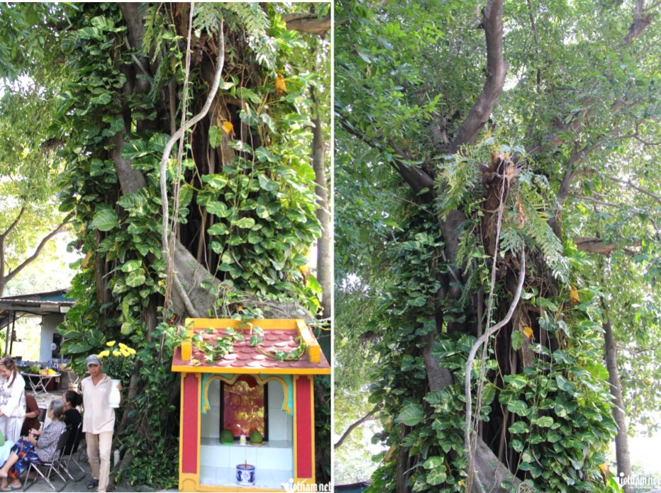 Xung quanh gốc cây có 3 am thờ nhỏ. Hai trong số 3 am thờ này có tượng hổ, voi. Bên trong am thờ còn lại có bài vị nền đỏ chữ vàng ghi dòng chữ: “Cung thỉnh ông Mộc tọa vị”.