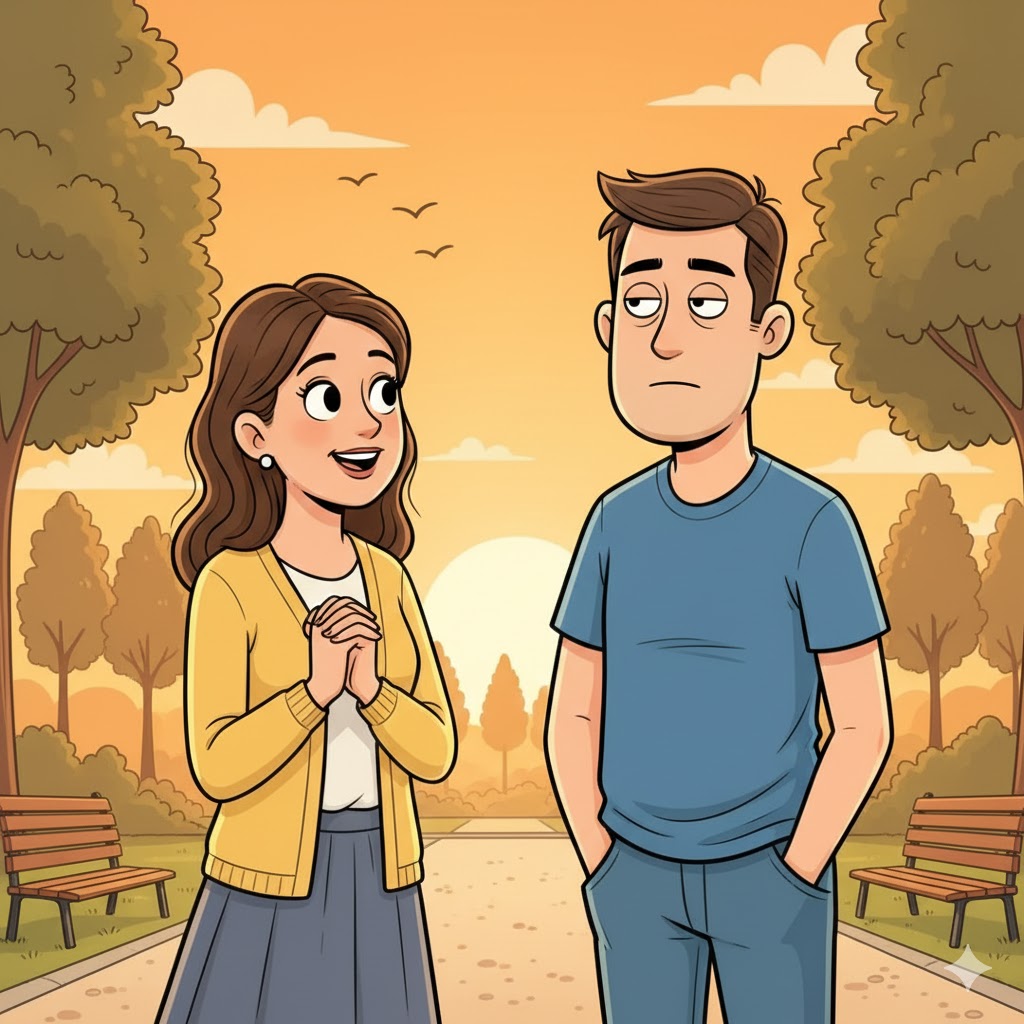 Một buổi chiều mát mẻ, hai vợ chồng dắt nhau đi dạo công viên. Cô vợ bỗng quay sang hỏi chồng với vẻ tò mò: