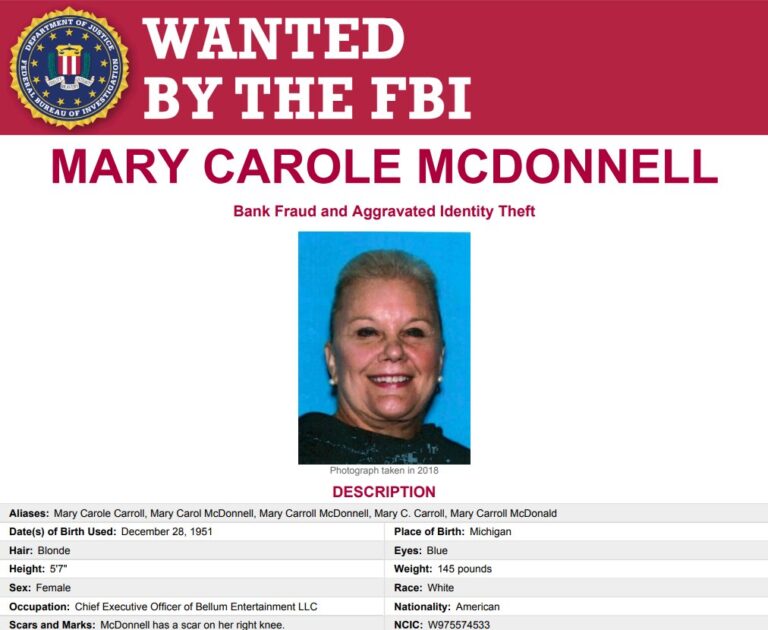 Bà McDonnell cao 5 foot 7 inch, nặng khoảng 145 pound, tóc vàng, mắt xanh, có vết sẹo trên đầu gối chân phải. Bà sử dụng nhiều tên giả như Mary Carole Carroll, Mary Carol McDonnell, Mary Carroll McDonnell, Mary C. Carroll và Mary Carroll McDonald, theo giới chức FBI.