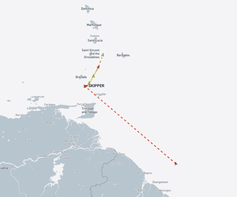 Khi bị Mỹ chặn bắt, tàu Skipper đang hiển thị vị trí khác, cách nơi hiện diện thực tế hơn 600km. Con tàu phát đi tín hiệu cho thấy đang ở Guyana và treo cờ quốc gia này trong khi thực tế không phải như vậy.