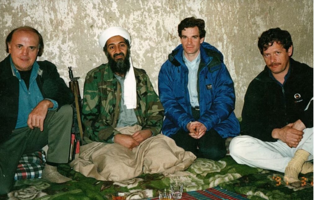 Từ trái sang: Peter Arnett, Osama bin Laden, Peter Bergen và quay phim Peter Jouvenal chụp ảnh chung vào năm 1997. Ảnh: CNN.