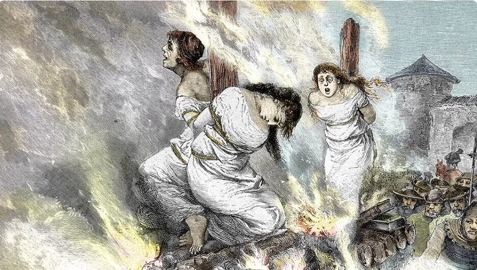 Ba nữ phù thủy trên giàn hỏa thiêu vào thế kỷ 15. Bản khắc thế kỷ 19 từ một bộ sưu tập tư nhân. (Ảnh minh họa: AFP)