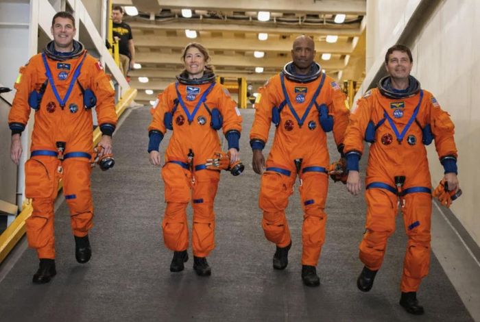 Bốn phi hành gia tham gia sứ mệnh bay vòng quanh Mặt Trăng trong đầu năm 2026, từ trái qua phải: Jeremy Hansen, Christina Koch, Victor Glover, Reid Wiseman. Ảnh: NASA