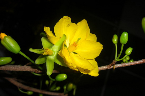 Mẹ lặn lội lái xe lên tận Hamburg, mua đủ thứ. Dưới bàn tay mẹ, hiện ra cũng đủ bát măng, bát bóng, đĩa gà, đĩa xôi. Mẹ con nhìn nhau, vẫn thấy thiêu thiếu. Rồi mẹ ra vườn, chặt vào một cành cây khô, lại cầm thêm xấp giấy ăn mầu xanh, mầu hồng. (Nguyễn Thùy Dương, Đức)