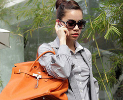 Hồ Ngọc Hà sành điệu cùng chiếc túi cùng hiệu nhưng khác màu với Thanh Thảo. Một bài báo từng đưa tin cô còn khoảng 30 chiếc như thế đang nằm chờ sẵn trong tủ áo.