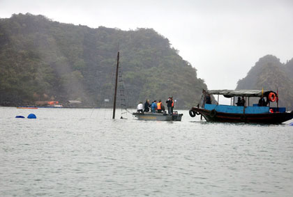 Tàu chìm tại Quảng Ninh đã được đưa lên mặt nước