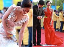 Mỹ nhân bối rối vì váy dài lượt thượt
