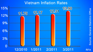 Số liệu chính thức của Tổng cục thống kê vừa phổ biến cho thấy Việt Nam đang chịu lạm phát rất cao đẩy mức tăng vật giá gần như nghiêm trọng nhất thế giới.