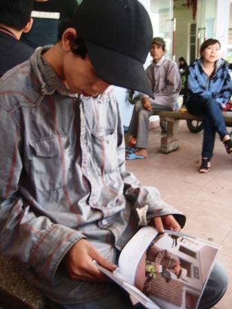 Một lát thì Bi xuất hiện với bộ dạng còn tàn tạ hơn lần tôi gặp em trước đó. Vừa chào tôi em đã hỏi ngay: “Chị có mang tờ báo cho em không?”. Tôi rút cuốn sách, trân trọng trao cho em, nghĩ em sẽ hào hứng và nâng niu lắm.