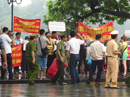 - Việc giữ người ở đây, báo Hà Nội Mới, cơ quan chính thức của Đảng Ủy Hà Nội đă đưa tin, vậy không thể ở đây không biết họ đi đâu. Nếu nói công an quận Hoàn Kiếm không biết, th́ có lẽ 10 con người đó đă mất tích sau khi bị đưa về công an quận, việc mất tích 10 con người đang sống ở giữa trung tâm thủ đô chắc chắn sẽ gây hoang mang lớn. Nếu các anh nói đây là việc điều tra bí mật không tiết lộ được th́ đi một nhẽ khác, nhưng nói không rơ th́ sự việc này đă sang hướng khác.