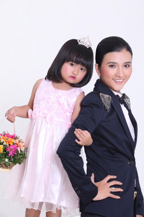 Bộ ảnh lấy ý tưởng độc đáo, Kim Tuyến vào vai chú rể bên cạnh cô dâu xinh đẹp là cô công chúa đáng yêu của mình. Kim Tuyến luôn mong cuộc sống yên bình và hạnh phúc sẽ luôn đến với mẹ con cô.